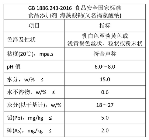 GB 1886.243-2016 食品安全國(guó)家標(biāo)準(zhǔn) 食品添加劑 海藻酸鈉(又名褐藻酸鈉),也可根據(jù)客戶需要,生產(chǎn)符合E401、FCC標(biāo)準(zhǔn)要求的產(chǎn)品。